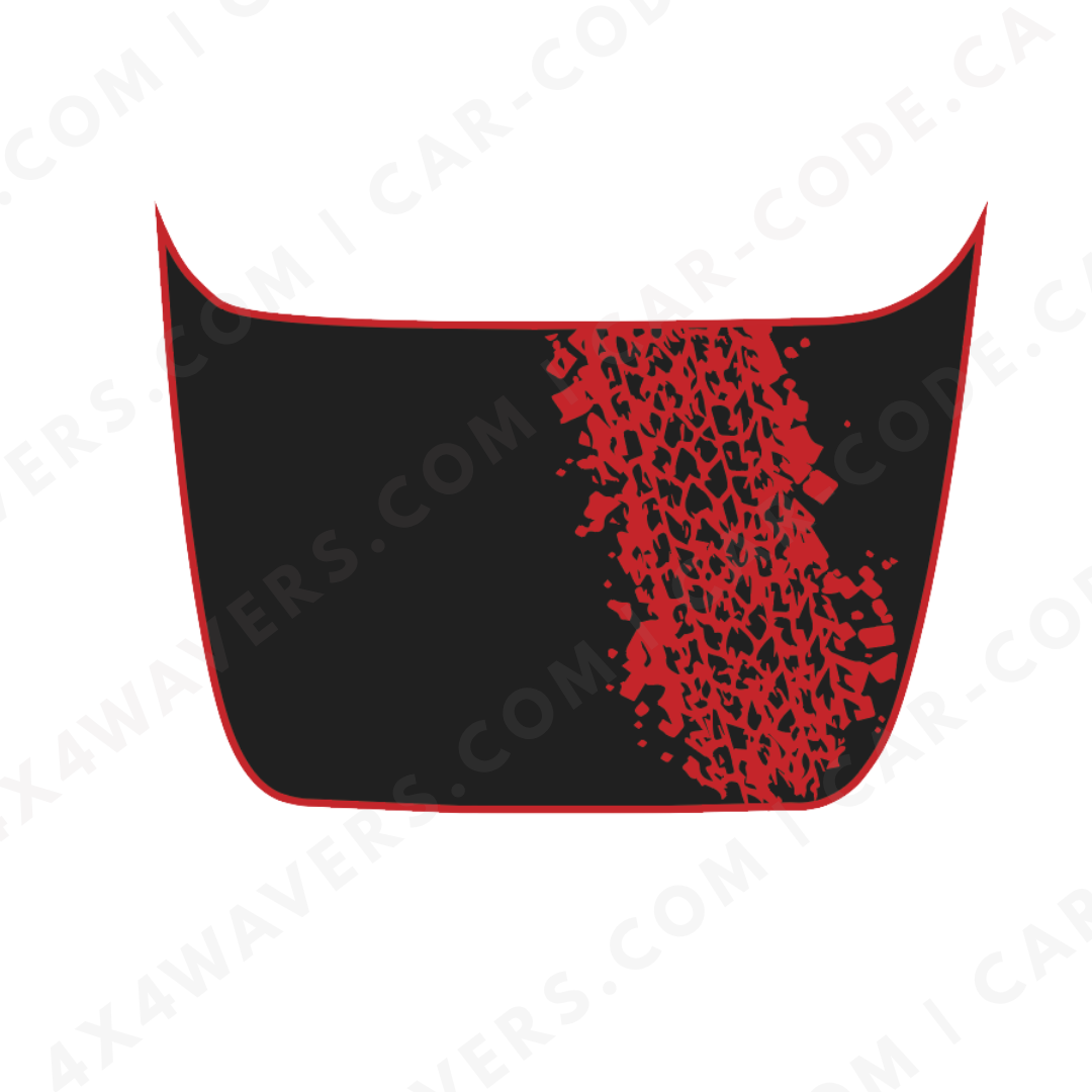 Trail vibes, zero mess. This center-insert hood panel lays a gritty diagonal tire track across the passenger or driver side with a matching thin border. Sized precisely for the Ford F-150 Raptor (Gen2 2017–2020, Gen3 2021–2024, and 2025+). Choose Printed 3M + matte laminate for a single-piece finish, or Avery cut-vinyl for a premium layered look. Peel-and-stick install; paint-safe removal.