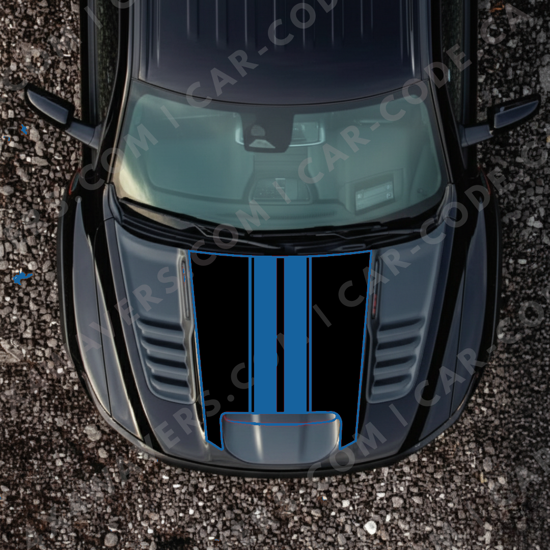 This three-piece hood panel kit fills the center of the hood and both outer wings with a deep matte black field and a sharp Racing Stripes outline. Each piece is sized specifically for the Ram 1500 2019-2024 TRX, so panel gaps and edges follow the factory lines for an almost OEM look. Choose Cut-Out (your paint shows through the Racing Stripes or Solid in your accent colour. We are using premium materials exclusively (3M, Avery, Oracal, Hexis).