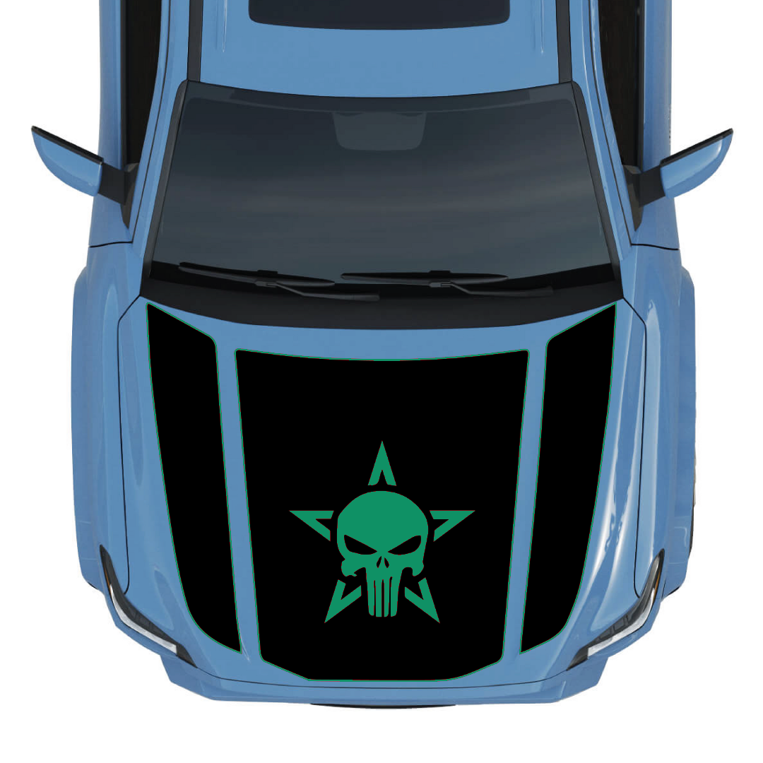 Pick Cut-Out or Star Style and choose your accent colour. Standard options include our full colour deck: neutrals, brights, metallics, and more. Need a different size for an aftermarket hood, scoop, or wrap, or want to add text or GPS coordinates along one of the panels? Send a message and we will adjust the template and send a digital proof before cutting.